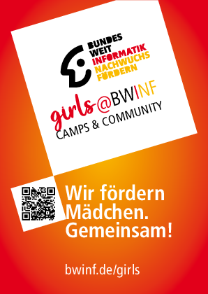 Die Initiative girls@BWINF will informatikbegeisterte Schülerinnen miteinander vernetzen und sie motivieren, ihr Talent weiterzuentwickeln. Dazu bietet BWINF verschiedene Informatik-Camps für Mädchen an, wählt Kandidatinnen für die European Girls' Olympiad in Informatics (EGOI) aus und bereitet sie auf den jährlichen europäischen Programmierwettbewerb vor.