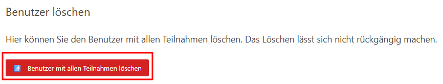 Scrollen Sie im Profil nach unten und klicken Sie auf den roten Button „Benutzer mit allen Teilnahmen löschen“.