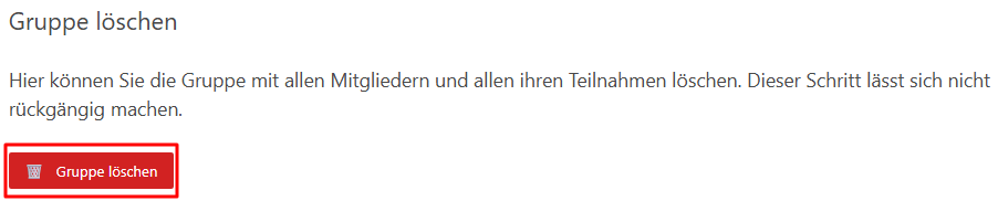 Scrollen Sie in der Gruppenübersicht nach unten und klicken Sie auf den roten Button „Gruppe löschen“.