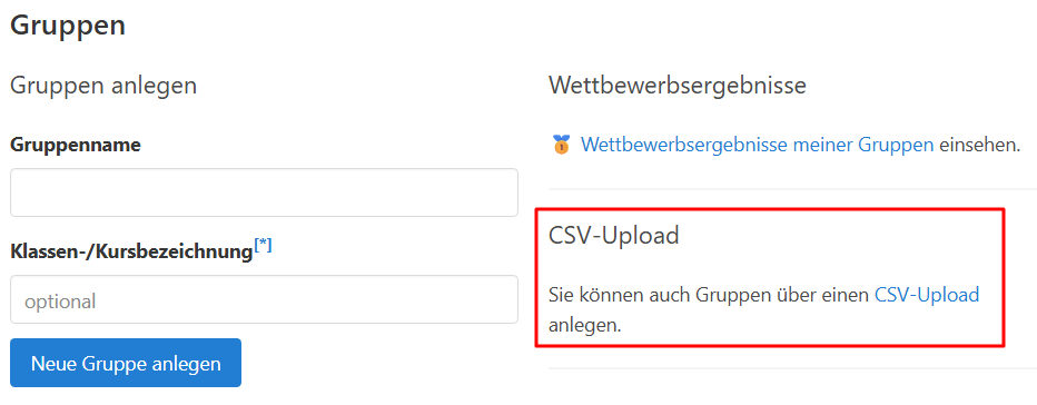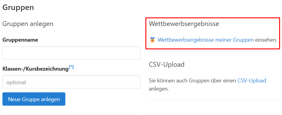 - Klicken Sie auf „🥇 Wettbewerbsergebnisse meiner Gruppen einsehen“.